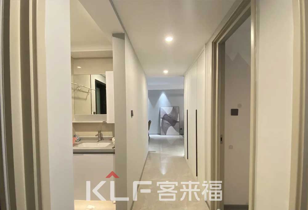 客廳通道臥室的過道很寬,所以設計出一款嵌入式的柜子,不僅不占用空間,還留出很大的空間收納衣物,相當于一個小型的儲物間。乳白色的柜體不會突兀,到頂?shù)囊鹿耖T板采用了拉直器固定,即是再高門板也不會變形彎曲。