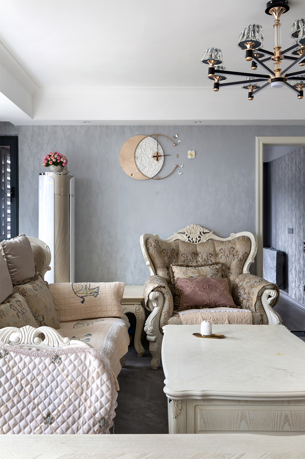 客廳的沙發(fā)套與餐桌椅的風(fēng)格一致,吃完飯之后便可以來到沙發(fā)處休息。