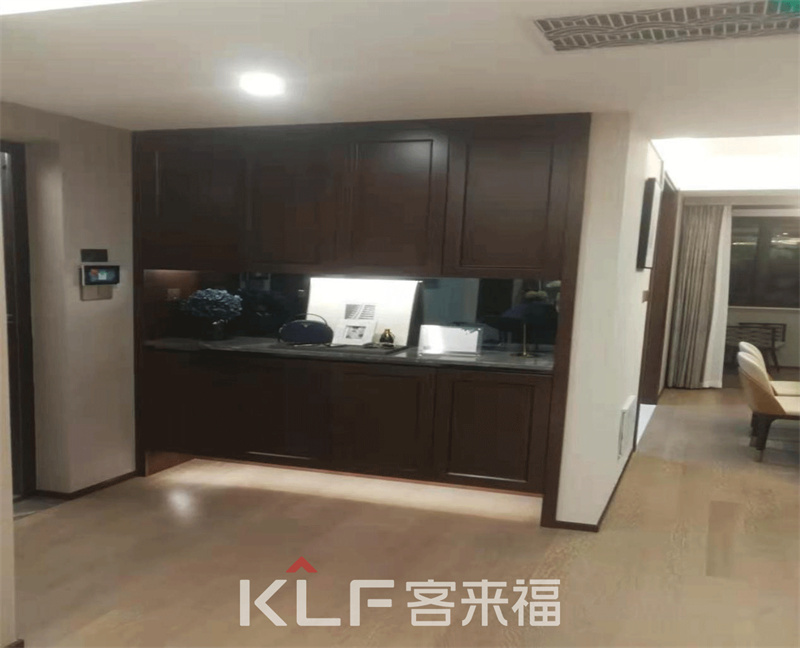 按照戶主的設想,我們在玄關處設置了一柜到頂?shù)男P柜,中空和下空設計,讓鞋子和隨手物件各歸其位,凌亂的玄關空間變得整齊。整墻深色系柜體博朗大氣,大開柜門設計,讓收納不再是難題。