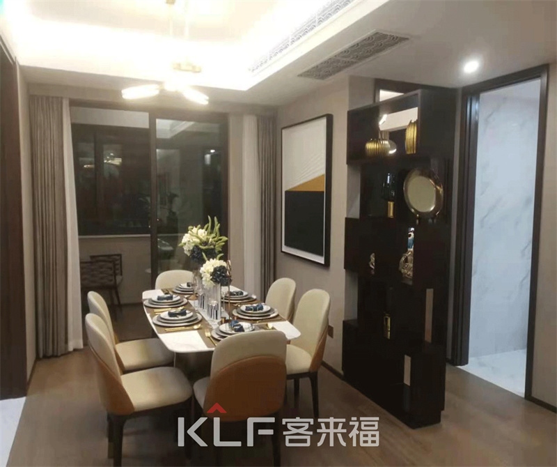 走過客廳,轉身就來到了餐廳空間,柔軟布料搭配木質框架,營造典雅奢華的餐廳環(huán)境,在暖陽如火的燈光映射下,食物仿佛鍍上了一層朦朧的金。餐邊柜的設計充分考慮到女主人的收納要求。