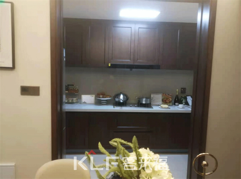 靠近餐廳一旁就是充滿煙火氣息之地,寬U型構造,讓廚房更大,空間寬廣的同時,動線設計合理,依據(jù)女主人的身高量身打造的櫥柜,讓做放拿取都簡便自如。深色系和白色搭配,讓操作臺更顯明亮。