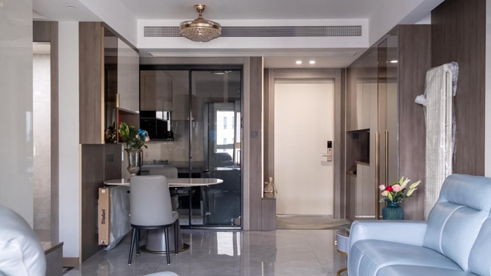 本期探屋的案例與其他案例不同的點在于細節(jié)處體現(xiàn)出體貼的本質(zhì),無論是在玄關(guān)處的換鞋凳還是餐桌上的吊柜,為生活增添了些許的便利。超晶板材的運用不僅日常耐打理,將板材表面的色澤貼上光彩,色彩由內(nèi)而外的煥發(fā)。