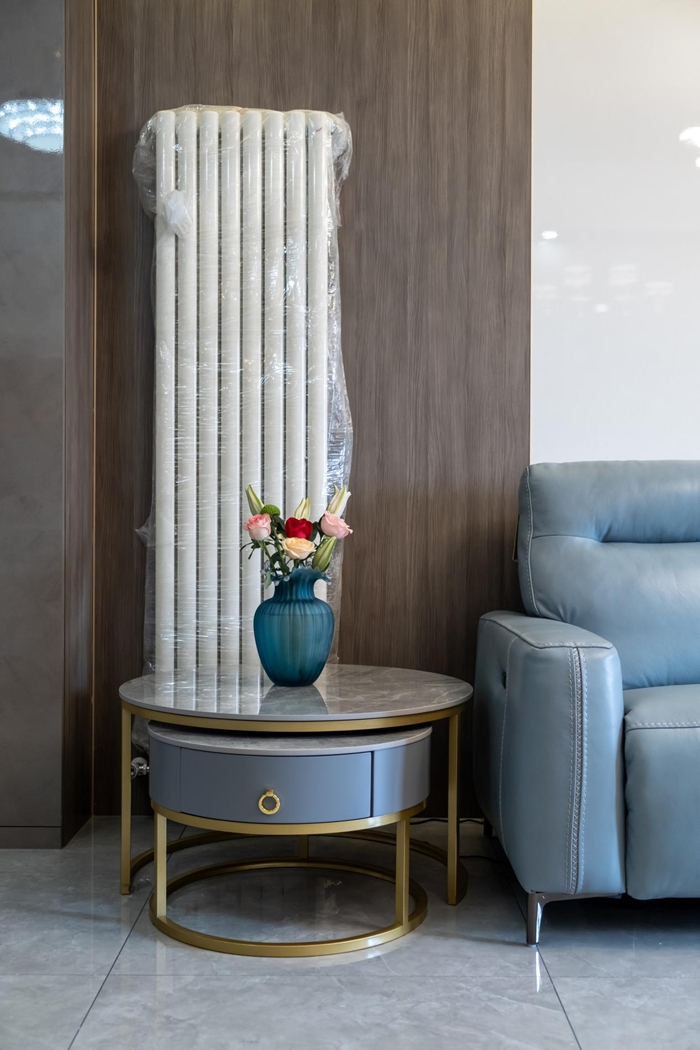 客廳背景墻采用整面超晶板,耐磨易清洗的優(yōu)點受到客戶的喜愛。藍色的皮質(zhì)沙發(fā)在光線的照射下更加清晰動人,女主人想通過藍色將整體的色調(diào)更加柔和,給來家里做客的客人眼前一亮的感覺。