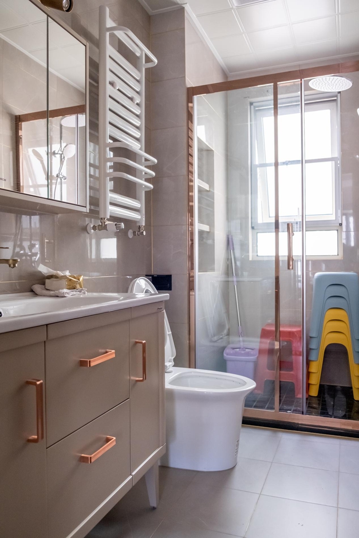 兩處衛(wèi)浴無論是室內(nèi)還是室外的,淋浴間的踢腳線高度都非常充足,在考慮到水量流動和儲存的情況下,踢腳線高一點便于室內(nèi)干濕分離,不會在淋浴之后空間內(nèi)依舊是濕漉漉的狀態(tài)。