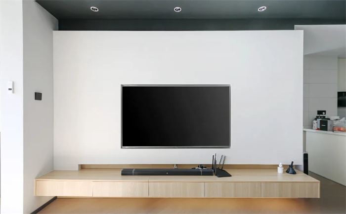 電視背景墻沒(méi)有做整面的內(nèi)嵌式的電視柜,考慮到客廳內(nèi)的整體面積和空間展示,以整面的大白墻打底更符合極簡(jiǎn)主義的特點(diǎn),在電視柜的內(nèi)部安裝了燈帶,夜晚看電視的時(shí)候也能多一份溫馨。