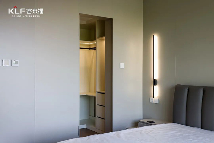臥室衣柜多采用芬蘭白柜體,簡(jiǎn)潔大方,輕松打造出極簡(jiǎn)奶油風(fēng),搭配定制木作背景墻,手感細(xì)膩,高級(jí)品味不言而喻。