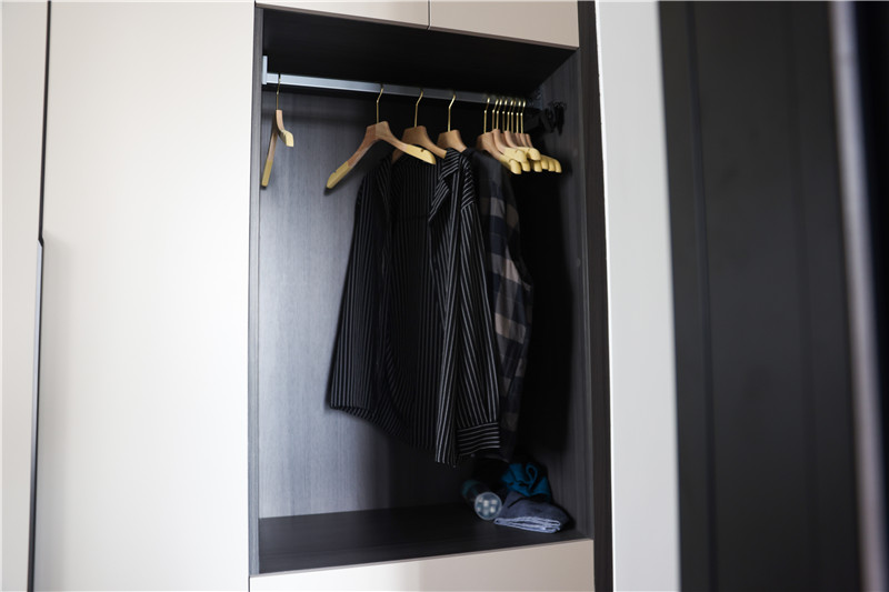 客來(lái)福在該臥室衣柜上獨(dú)具匠心,通過(guò)與屋主的共同配合,將該臥室空間利用發(fā)揮到了理想狀態(tài)。