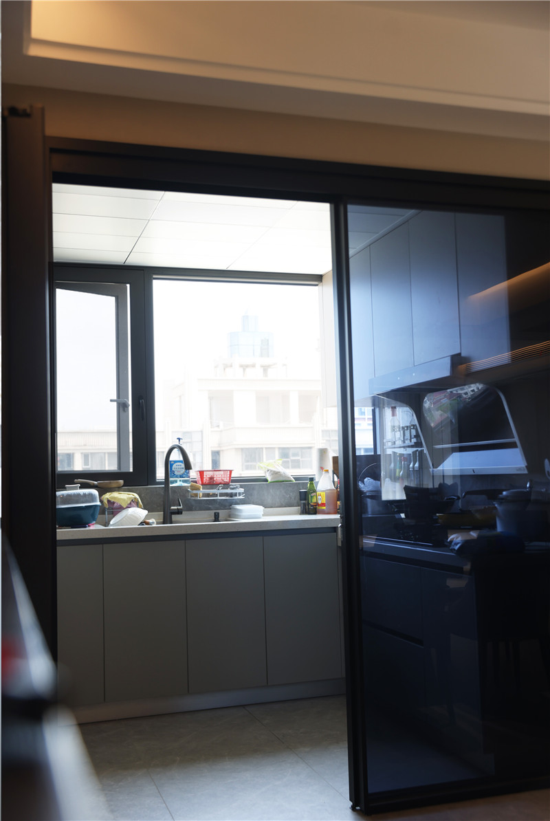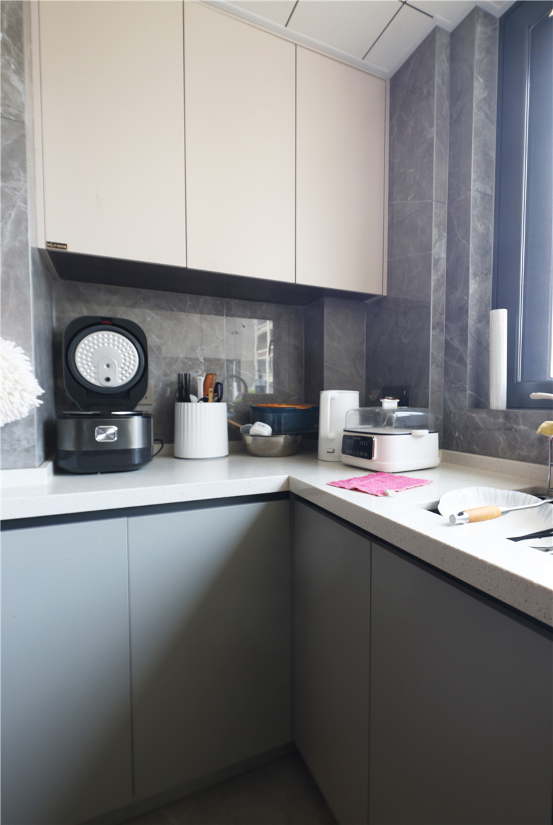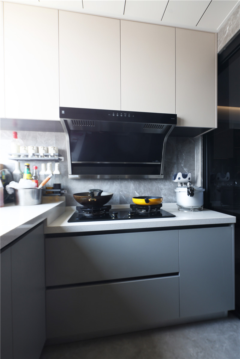 無(wú)拉手設(shè)計(jì)、高低臺(tái)面、擋水條等,該廚房設(shè)計(jì)遵從著實(shí)用、簡(jiǎn)潔理念,打造幸福美好生活。