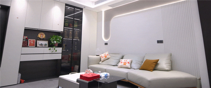 全屋色彩以芬蘭白、黑木紋為主調(diào),簡約雅致,其整體到細(xì)節(jié)的考究,展現(xiàn)出人們對生活品質(zhì)的追求。