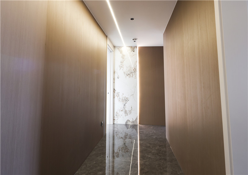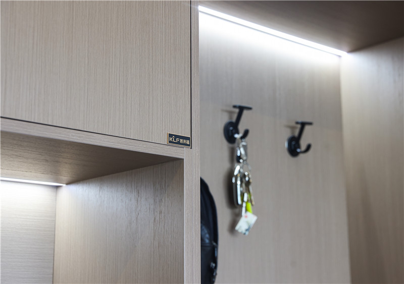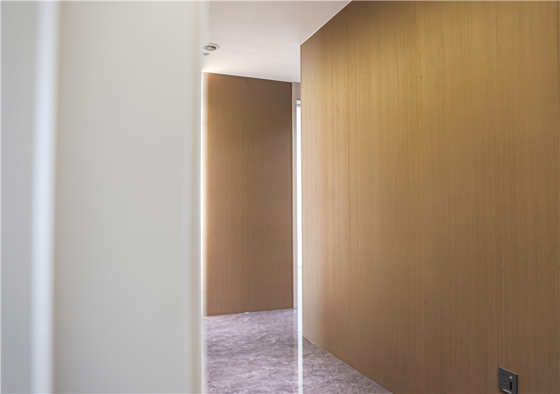 玄關(guān)柜與走道遵從著門(mén)墻柜一體化設(shè)計(jì),選用客廳柜同種板材強(qiáng)調(diào)著整體的統(tǒng)一;在大面積的原木色使用下、在自然木質(zhì)紋理呈現(xiàn)下,帶給家居溫暖與平靜。