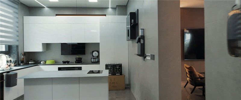 廚房采用中性色,整體簡(jiǎn)約大方;將烤箱等大電器嵌入柜體中,視覺明朗;櫥柜+島臺(tái)式設(shè)計(jì),優(yōu)化整體空間動(dòng)線。