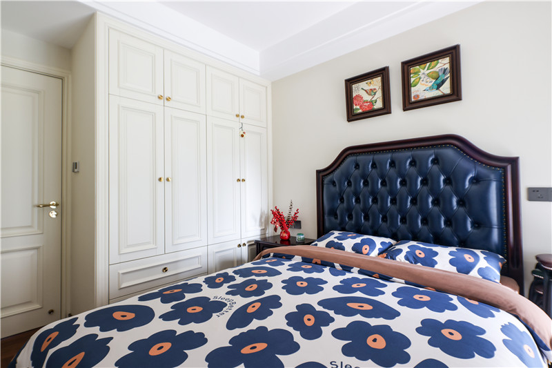 次臥:次臥做了組頂天立地式柜體,極光白與芬蘭白相互映襯,與床體深調(diào)互補,突出美式的高雅,這樣整潔自然的家居環(huán)境,讓人心動!