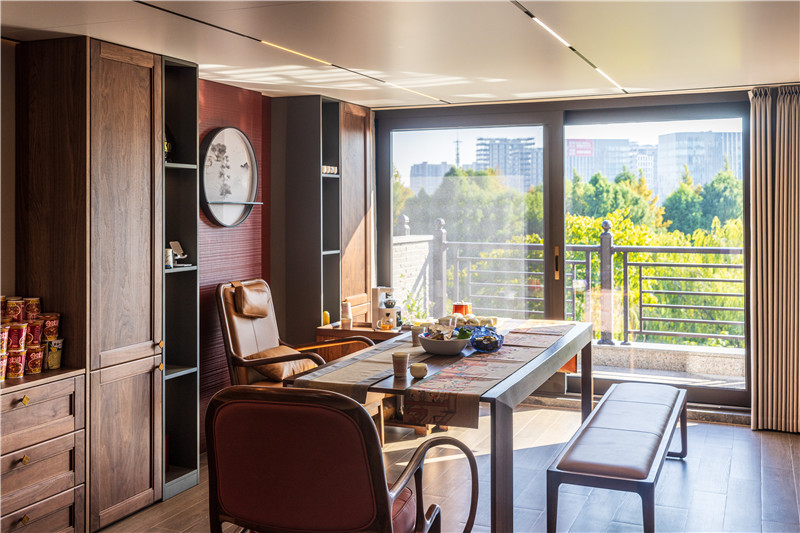 空氣清新、陽光正好、一方閑適。陽臺柜由沙發(fā)背景墻延伸,桌椅配套客廳空間,讓居者享受自然、與時光共處。