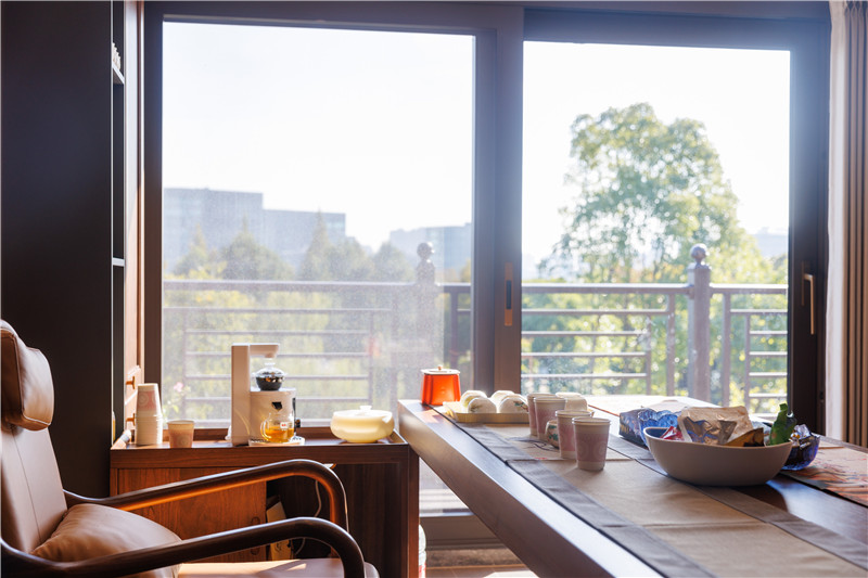 四樓為休閑區(qū),或靜、或聚、或談,短時間的歡愉成為心底的能量,讓來日的期待更勝一籌!茶為大雅之物,新中式茶室展現(xiàn)古文化的風骨之氣。