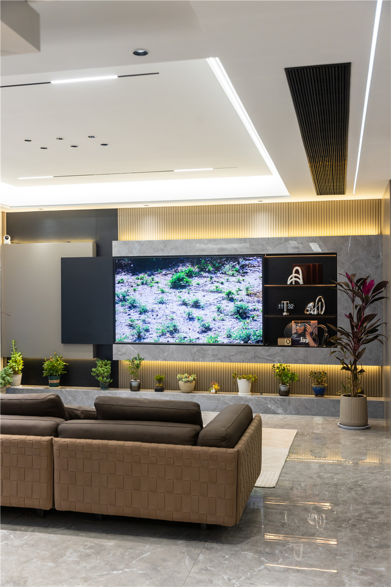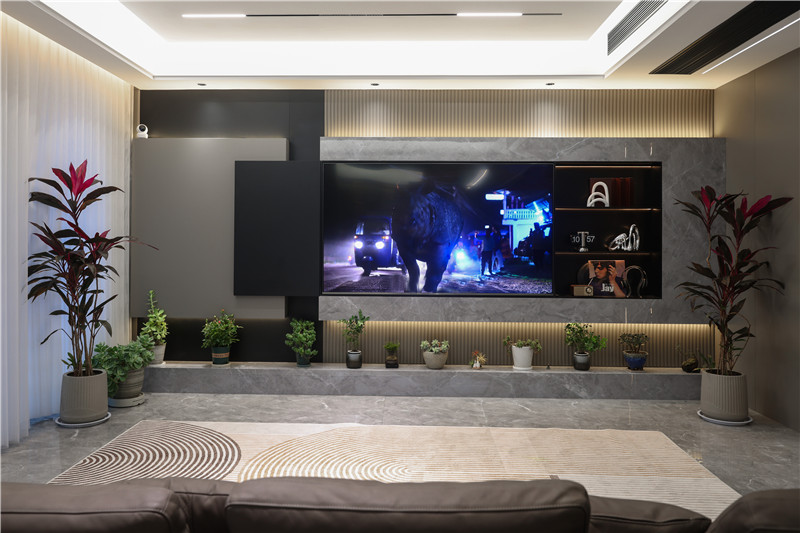客廳高級(jí)構(gòu)造,以創(chuàng)意、新意展現(xiàn)定制魅力。整體開放式設(shè)計(jì),以無主燈設(shè)計(jì)突顯空間氛圍感,氣質(zhì)顯露。
