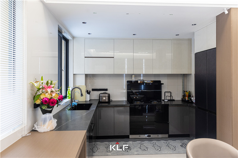 進(jìn)門配套餐桌椅巖板圓弧收邊,耐污防滲水的同時安全系數(shù)高。櫥柜以U型構(gòu)造發(fā)揮收納存儲功能,上淺下深構(gòu)造、門板為亮面,易清潔打理。