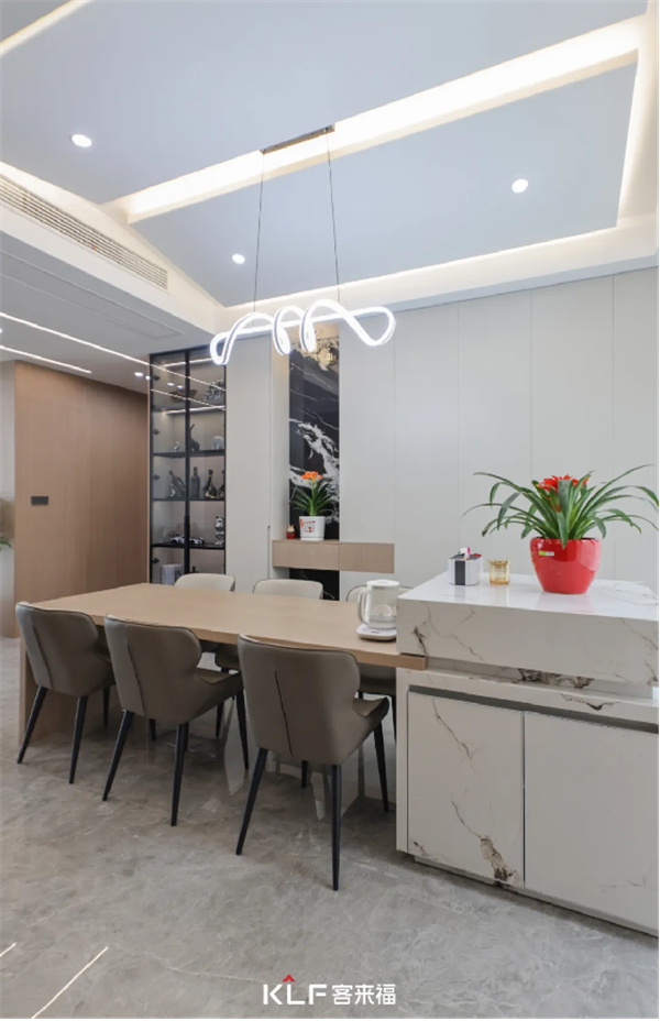 餐桌吧臺采用巖板材質(zhì)設(shè)計