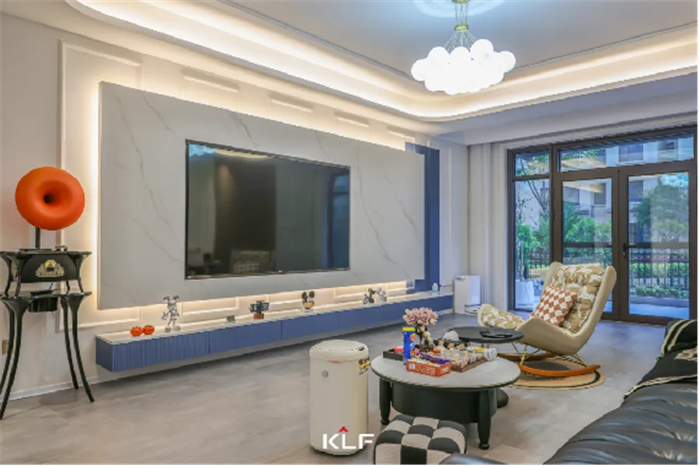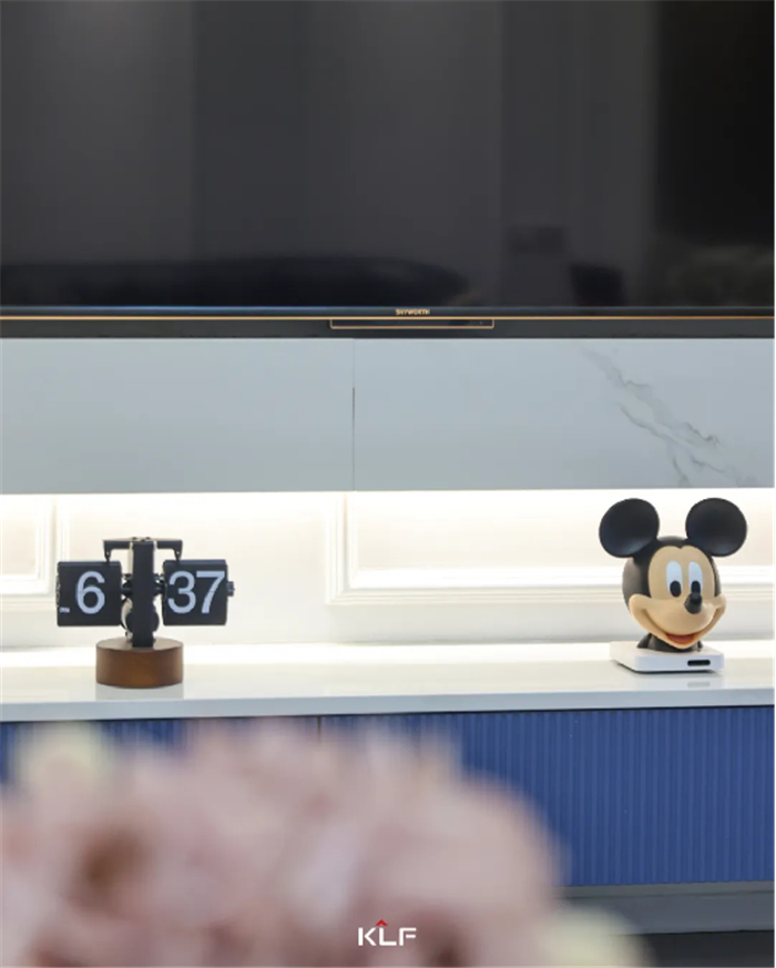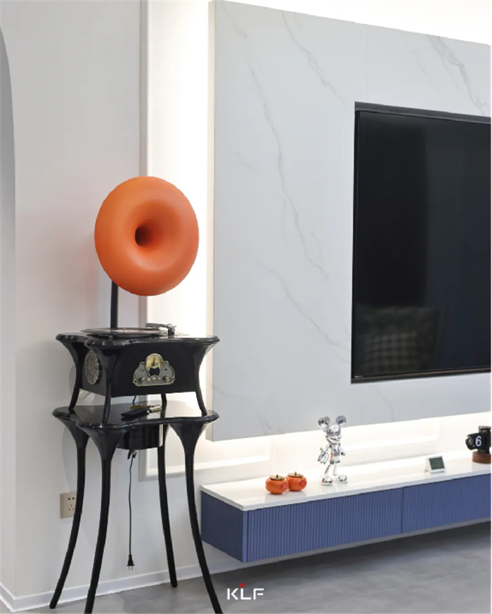 客廳法式雕線設(shè)計背景墻搭配巖板優(yōu)雅元素,精細(xì)考究的制作工藝突出了法式的標(biāo)志,更增添幾分浪漫情懷。