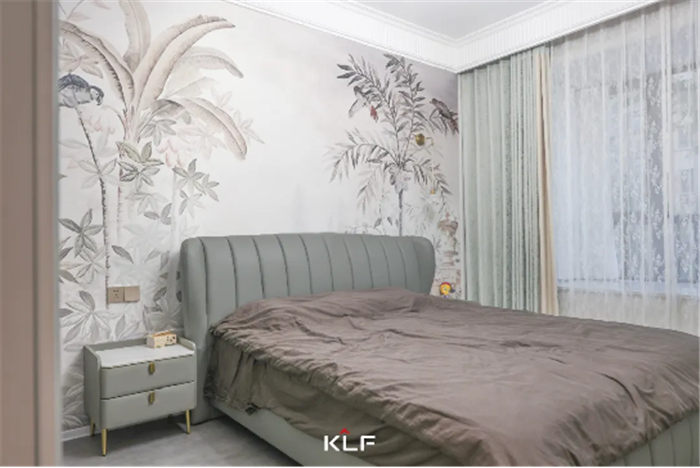 主臥在床頭背景墻的設(shè)計上,選用了圖案的壁紙,這種壁紙不僅與輕法式風(fēng)格相得益彰,還為空間增添了一份浪漫與溫馨。