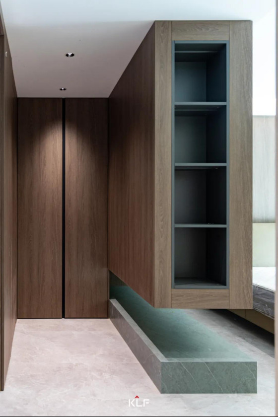 臥室衣帽間一體化設計,充分利用臥室空間,通過重視空間布局、設計元素和細節(jié),融合意式極簡風格,創(chuàng)造出自由舒適的居住環(huán)境。