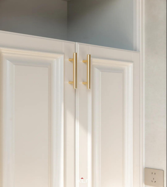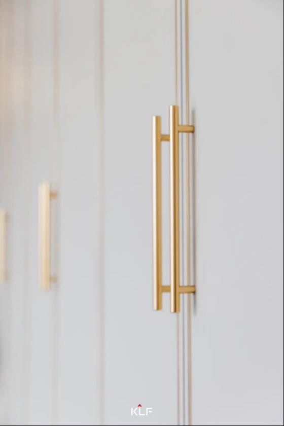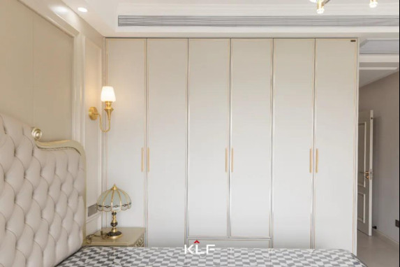 主臥木門和衣柜延續(xù)水漆茶白色調(diào),與空間和諧統(tǒng)一,臥室空間更干凈整潔。精巧的古銅色拉手點綴,讓整個空間顯得大氣十足。