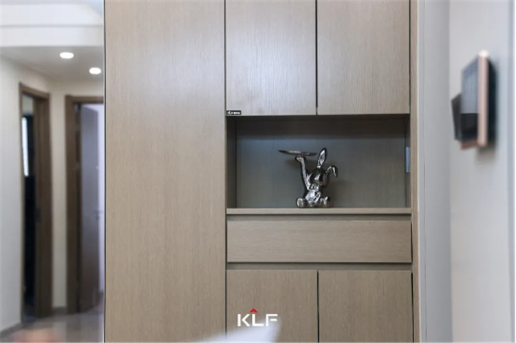 簡約玄關柜設計,在有限的空間內將柜子的功能發(fā)揮到了理想狀態(tài),擁有放鞋區(qū)、掛衣區(qū)、儲物區(qū)、裝飾區(qū)……滿足多種功能的同時,整體不顯得繁雜,實用又美觀。