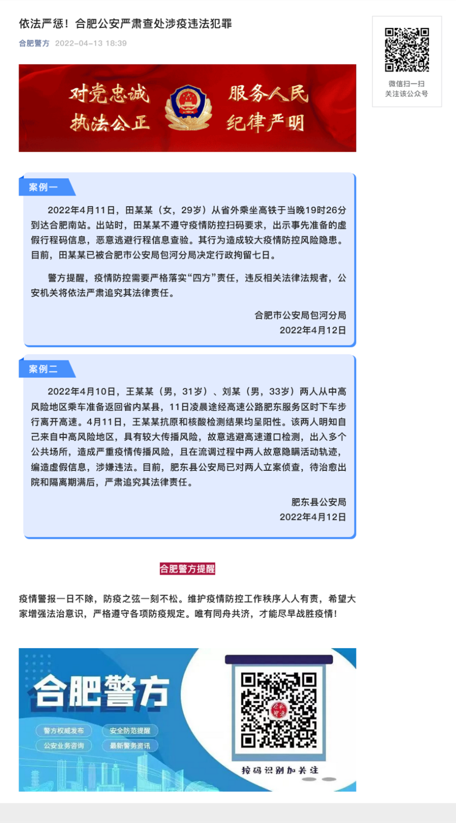 依法嚴懲!合肥公安嚴肅查處涉疫違法犯罪