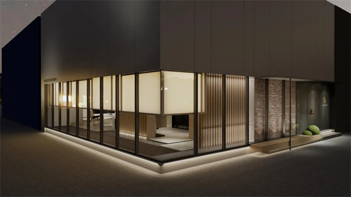 在即將到來的建博會上,革物為大家?guī)淼氖侨谌敫嗳宋那閼押蜁r代精神的東方系列作品。本次展廳共分為四個區(qū)域:洽談區(qū)、木皮產(chǎn)品區(qū)、極簡產(chǎn)品區(qū)、前廳接待區(qū),在展廳中融入拱形墻、外擴圓弧、格柵設(shè)計,將中式元素融入景觀中,形成相互交融,彼此和諧共生的綠色新景。