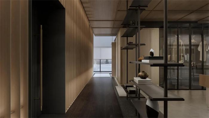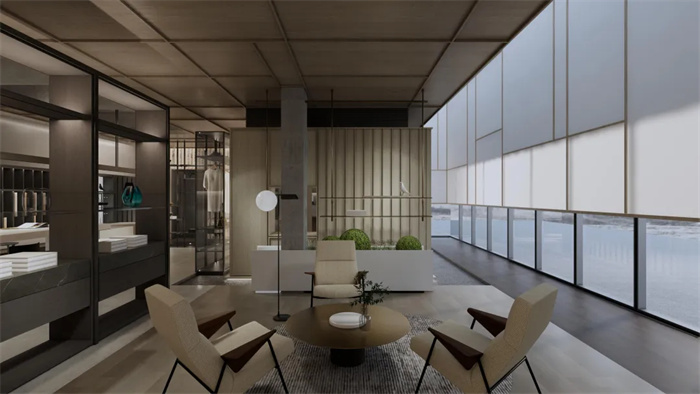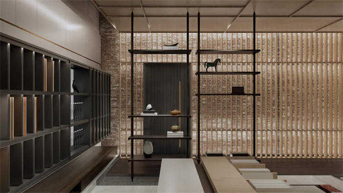 空間中看不見的氣韻是設(shè)計追問的本質(zhì)所在,東方意境的抽象文化,用線條和色彩的形式呼應(yīng)空間,建立秩序感與層次性,展開現(xiàn)代簡奢品質(zhì)生活畫卷中詩意棲居。