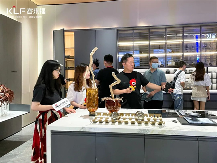 尹其宏董事長(zhǎng)介紹道:客來(lái)福在此次展會(huì)、也是在行業(yè)內(nèi),首次重磅推出水漆實(shí)木系列產(chǎn)品。最值得一提的是“天琛”系列色板的水漆半透工藝。從制作工藝上講,采用了目前行業(yè)內(nèi)最領(lǐng)先的半透工藝——“見木不見漆”,木飾面與膚感PET的結(jié)合櫥柜。從水漆入手,水底水面,采用實(shí)木材質(zhì),看得到木皮但看不到油漆,近看可以清晰看出木紋通透的紋理感;0度膚感的觸覺,體驗(yàn)進(jìn)一步升級(jí)了產(chǎn)品的質(zhì)感。