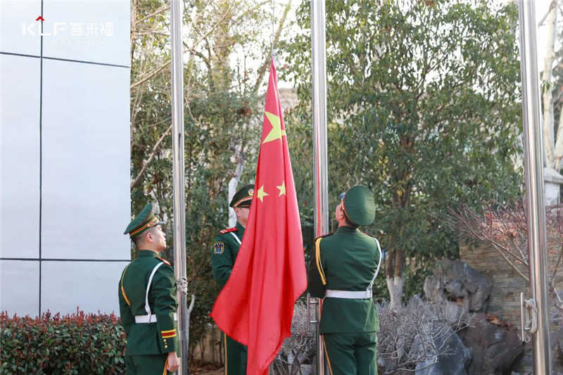 伴隨著“有黨有國(guó)才有家”的開(kāi)場(chǎng),啟動(dòng)大會(huì)第一項(xiàng):升國(guó)旗奏國(guó)歌儀式,隨著國(guó)旗緩緩升起,客來(lái)福全員行注目禮,并在國(guó)歌的伴奏下,心中堅(jiān)定信念、緊跟黨走,牢記客來(lái)福初心與使命,為祖國(guó)和人民奮斗。