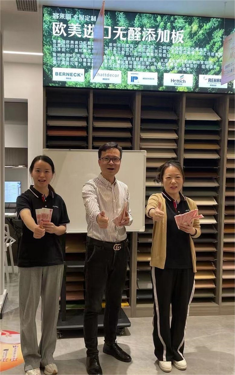在本次活動中,許總先進(jìn)行門店員工相關(guān)培訓(xùn)、總結(jié)工作,以客戶為中心,提升服務(wù)作為培訓(xùn)重點,為終端消費者提供更專業(yè)的定制家居服務(wù)。隨后,向在活動期間業(yè)績突出的員工進(jìn)行現(xiàn)金嘉獎,對員工優(yōu)秀的服務(wù)和專業(yè)的能力表示認(rèn)可。