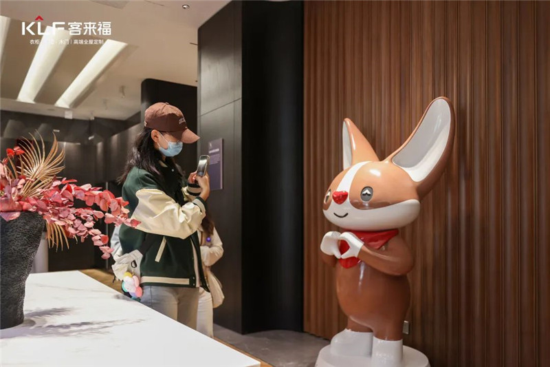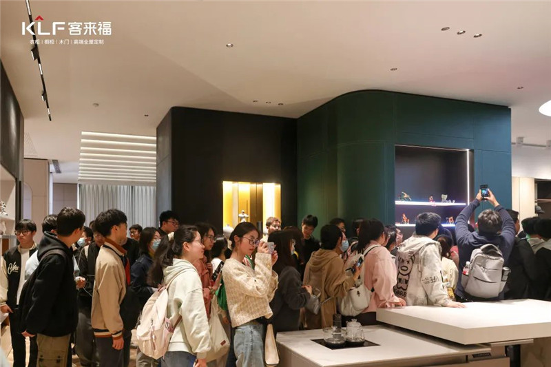 來自安農(nóng)大的學(xué)子們親自觸摸板材,感受家居設(shè)計的魅力,他們對客來福家居的產(chǎn)品設(shè)計和IP形象都表達出了自己的贊美和喜愛,紛紛在展廳內(nèi)拍照打卡。