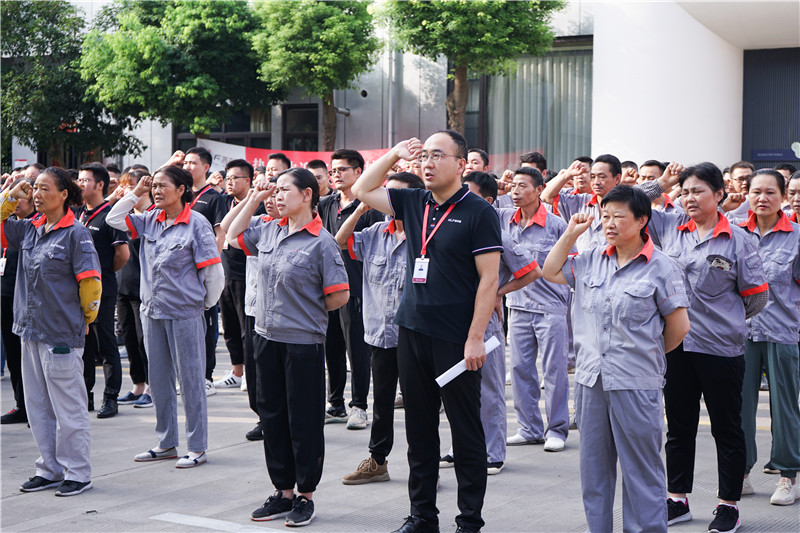 首先進(jìn)行莊嚴(yán)的升國旗奏國歌儀式,伴隨著國歌,國旗緩緩升起,客來福全體員工行注目禮,有國才有家,國是千萬家。隨后全體員工宣讀企業(yè)文化,在整齊、響亮的宣誓中,鄭重拉開啟動(dòng)大會(huì)序幕。