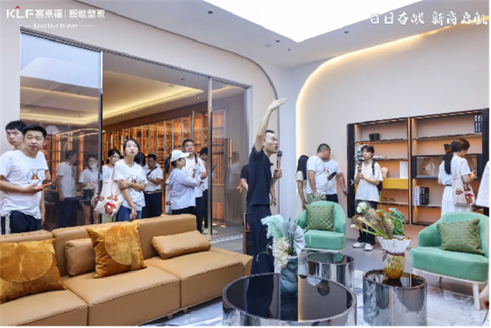隨后,經銷商家人們來到客來?,幒?偛繀⒂^展廳。從意式侘寂到現代極簡,從東方雅韻、歐式古典到GH CASA高定系列的大氣豪奢,展廳一游全方位展示了客來福不斷精進的產品創(chuàng)新力與勇攀高峰的綜合實力。
