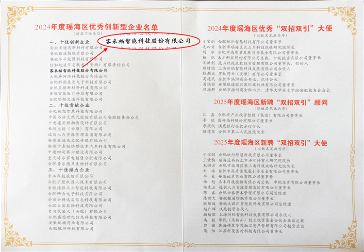 2月13日,2025年瑤海區(qū)縱深推進(jìn)“三大行動(dòng)”加快發(fā)展新質(zhì)生產(chǎn)力大會(huì)隆重召開(kāi)。會(huì)上,安徽客來(lái)福智能科技股份有限公司憑借卓越的創(chuàng)新能力與突出貢獻(xiàn),榮膺2024年度“瑤海區(qū)優(yōu)秀創(chuàng)新型企業(yè)”殊榮。