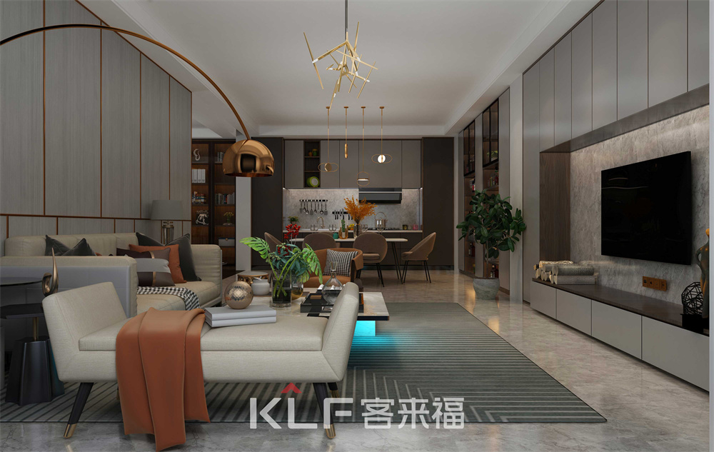 滿載光澤的金屬裝飾、經(jīng)典惹眼的雙色墻,造型簡約的時尚家具.....大量元素融合于客廳,營造出自由與浪漫,低調(diào)與奢華的氣質(zhì)。