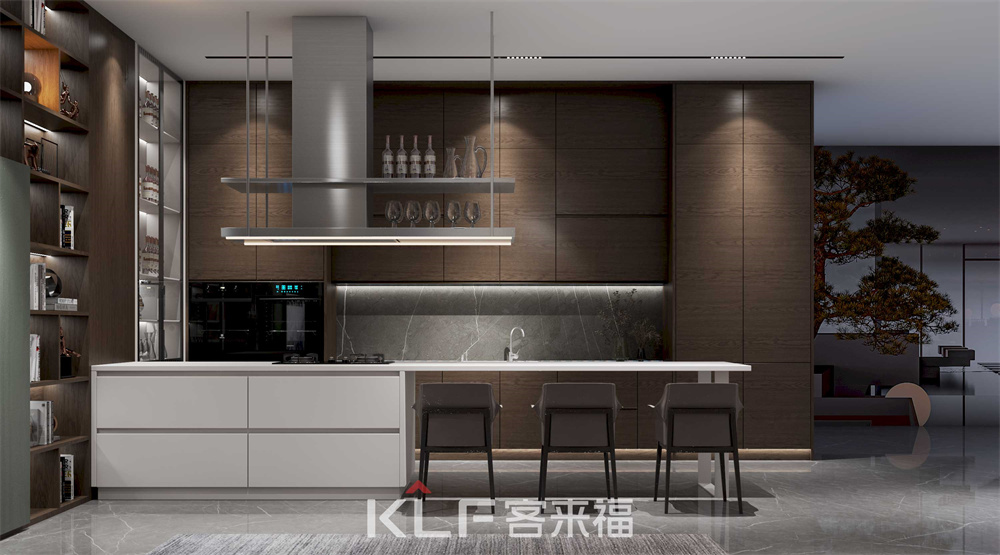餐廳區(qū)域采用一字型櫥柜和導(dǎo)臺(tái)相結(jié)合,深色和淺色想搭配的設(shè)計(jì),讓廚房更顯活躍,依靠新材料、新的科技元素加上光與影的?窮變化追求無(wú)常規(guī)的空間解構(gòu),大膽運(yùn)用對(duì)比鮮明的色彩,以及搭配剛?cè)岵?jì)的選材,這便是現(xiàn)代極簡(jiǎn)風(fēng)格廚房。