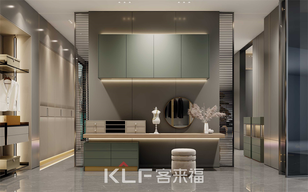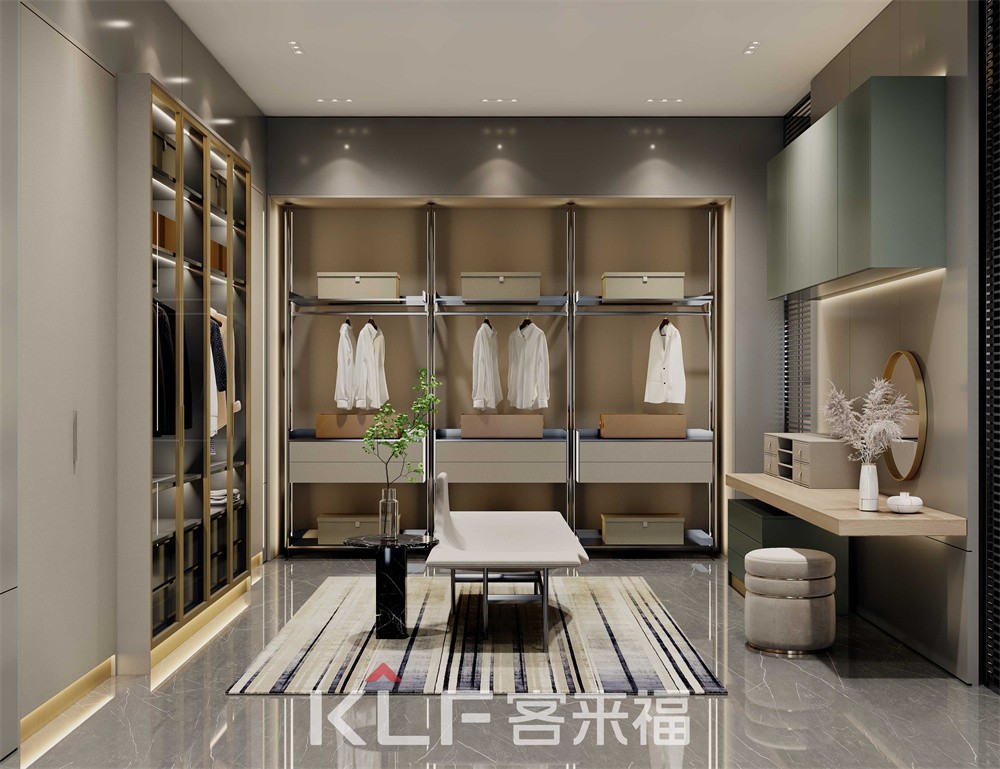 衣帽間里藏了生活的儀式感!墨奈系列衣帽間中間采用全透明的天地鉸鏈門,精美的展現(xiàn)出內(nèi)里衣物,同時(shí)還能防塵。側(cè)邊柔杏色梳妝臺(tái)搭配觀看死角的氛圍條帶燈,讓衣帽間整體梳妝一體,打造出優(yōu)雅環(huán)境。